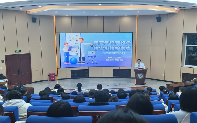 10月30日晚,公共卫生学院在霍林河校区明理楼报告厅举办“康复知识轻松学,推拿小技护青春”主题讲座。康复治疗教研室王策老师担任主讲,全校200余名学生现场聆听。团总支副书记乌兰图雅主持讲座。