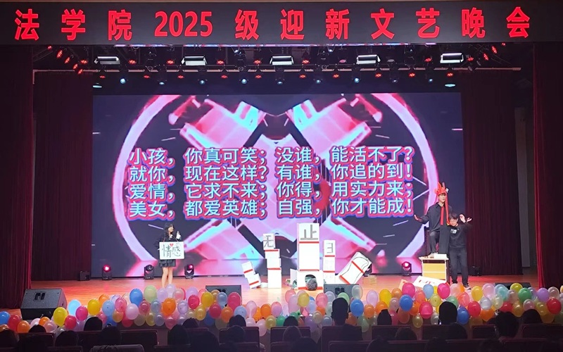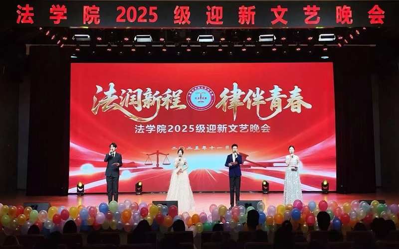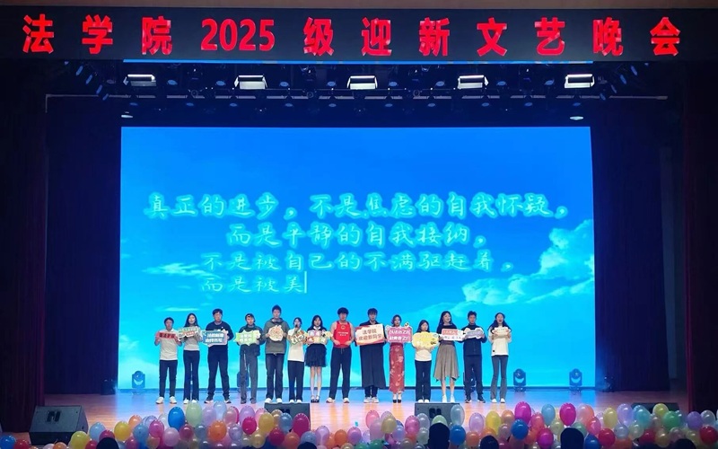 此次迎新文艺晚会,不仅是法学院为2025级新生精心打造的“温暖序章”,帮助新生快速融入集体、适应大学生活,更以文艺为载体,全面展现了法学院学子积极向上、勇于创新的精神风貌。晚会以“法”为魂、以“青春”为笔,将法治精神与文化艺术深度融合,既为新生的法治征程注入了温暖与力量,也彰显了法学院“立德树人、德法兼修、明法笃行”的育人理念。它不仅是一场视听盛宴,更是一次精神洗礼与价值引领,激励着全体法学院学子以青春之名、赴时代之约,在追求真理、践行法治的道路上坚定前行,以实际行动为建设法治中国贡献青春智慧与力量。