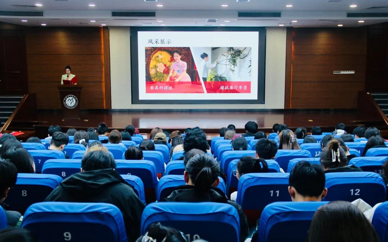 张彤同学以“专业引领与青春风采”为题,讲述了她在前厅服务中的经历,展现了高规格会务中标准化流程与亲和服务的完美融合;黄静雨同学聚焦会务保障,围绕“零差错”目标,分享了团队协作与应急处置背后的责任与智慧;王文卿与张新雅同学对客房服务中的点滴感悟娓娓道来,诠释了“于无声处见精神,于细微处显品质”的奉献真谛;刘思彤与李明玥同学则从餐饮礼仪的文化内涵出发,展现了服务过程中所传递的专业风范与时代自信。