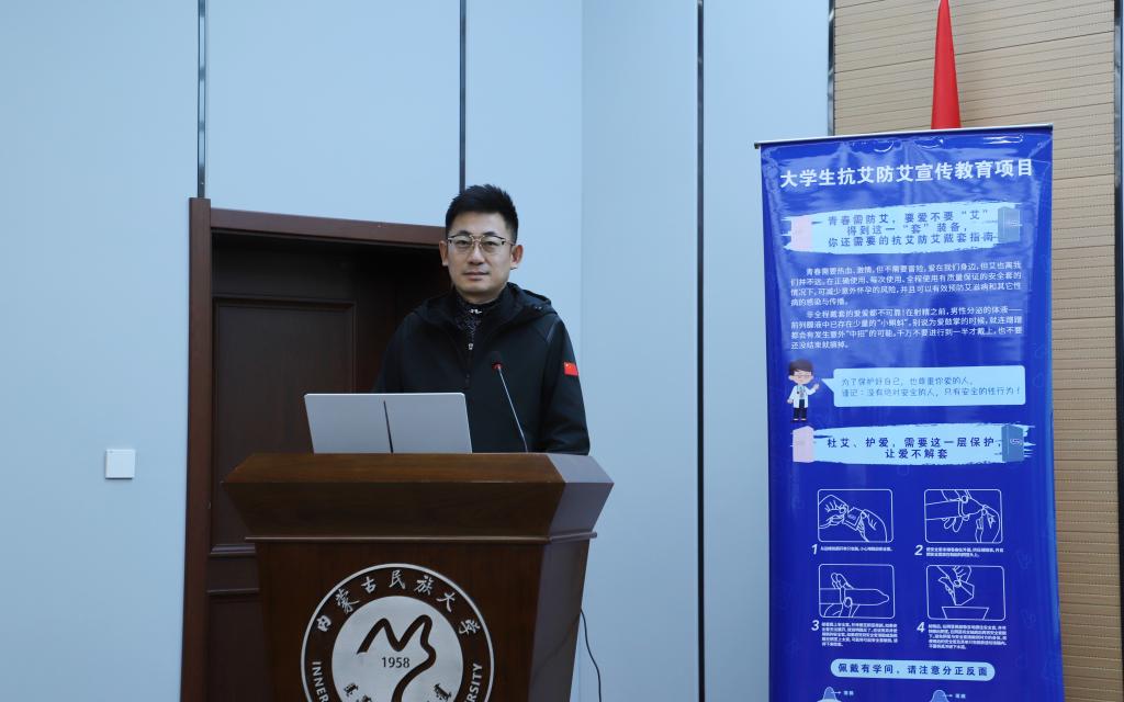 10月31日晚,校团委在图书馆大报告厅举办2025年大学生抗艾防艾宣传教育项目启动仪式。校团委副书记王强、通辽市疾控中心科长张艳萍、防艾特邀讲师郭建峰、谢奇昊、各学院学生代表及我校青春同伴社成员参加仪式。