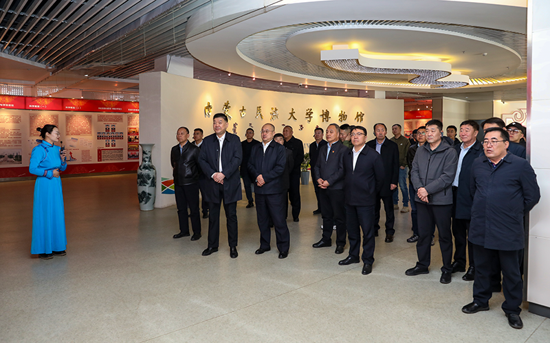 会前,与会人员到内蒙古民族大学考察调研,参观了学校博物馆。