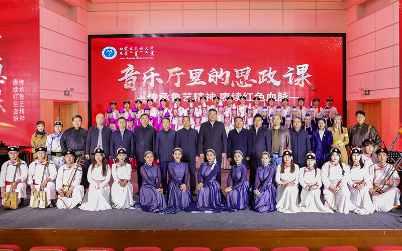 “音乐厅里的思政课”依托内蒙古民族大学铸牢中华民族共同体意识研究基地(自治区四部委)、内蒙古民族大学中华优秀文化传承基地(教育厅)、内蒙古民族大学非物质文化遗产研究中心(教育厅),由内蒙古民族大学冀察热辽鲁艺教育模式与传承创新团队和铸牢中华民族共同体意识高校公共艺术课程研究团队共同打造。内蒙古民族大学一直以来认真落实习近平总书记提出的“思想政治理论课是落实立德树人根本任务的关键课程”重要指示精神,积极推动思政课改革创新,全力打造学校北疆文化品牌,为全方位建设模范自治区贡献民大力量。
