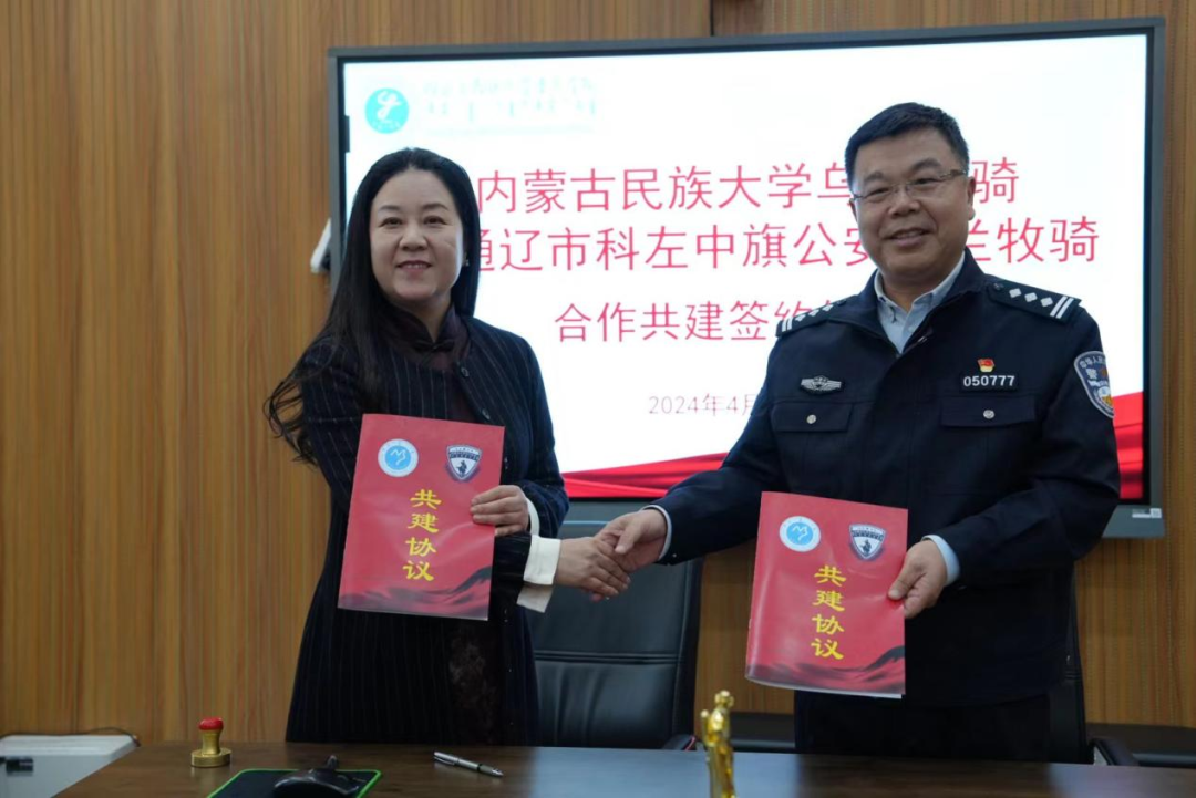 为进一步铸牢中华民族共同体意识,促进各民族像石榴籽一样紧紧抱在一起,大力繁荣北疆文化,推进北疆公安文化建设,以文化育警,提升队伍战斗力,4月26日,内蒙古通辽市科左中旗公安乌兰牧骑与内蒙古民族大学乌兰牧骑举行结对共建签约仪式。