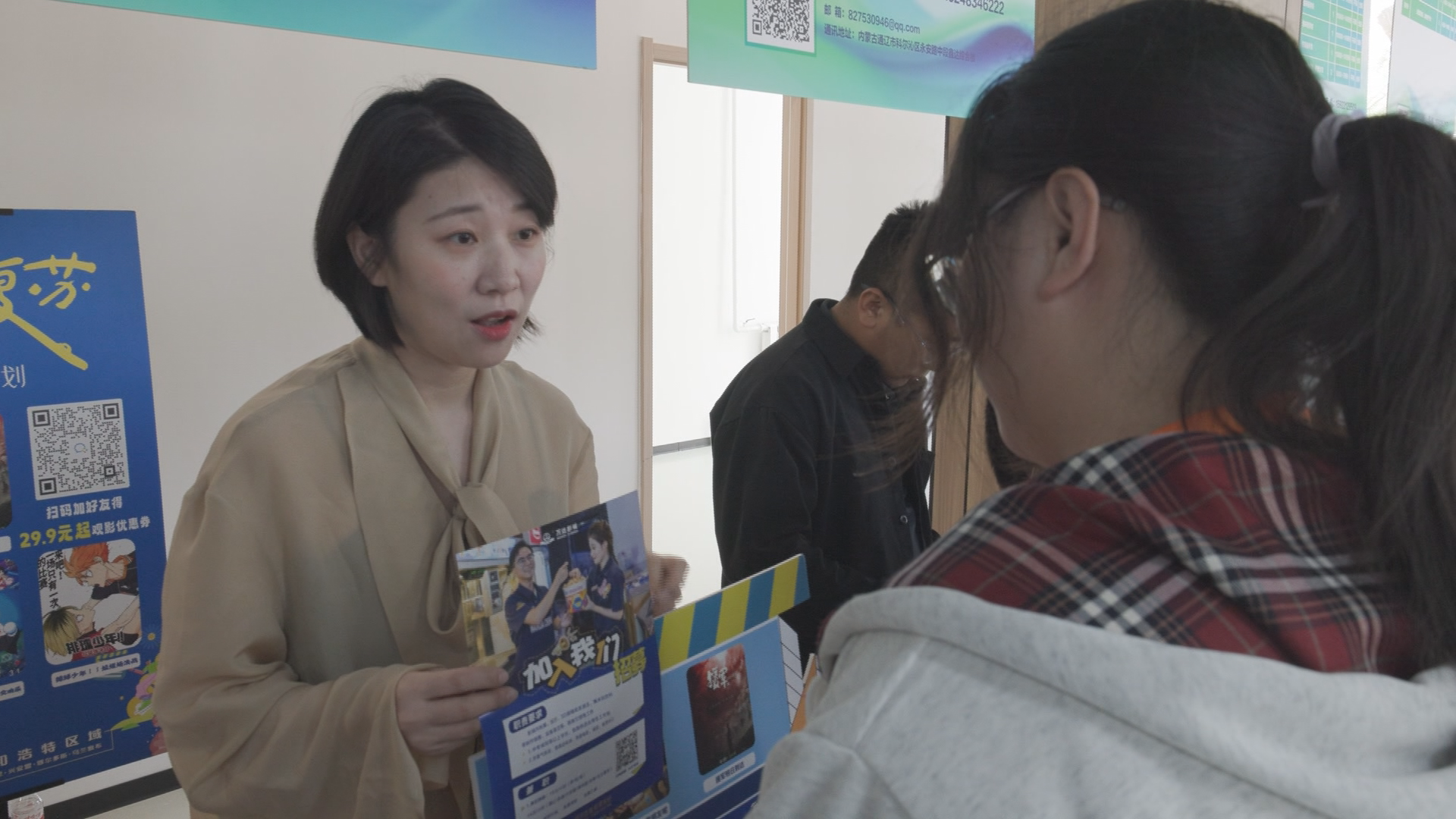 通辽市万达广场人力资源部助理袁静:作为一个纽带,希望通过这次机会,能够为更多的学生提供一个就业的平台,也能帮助企业招聘到合适的人才。