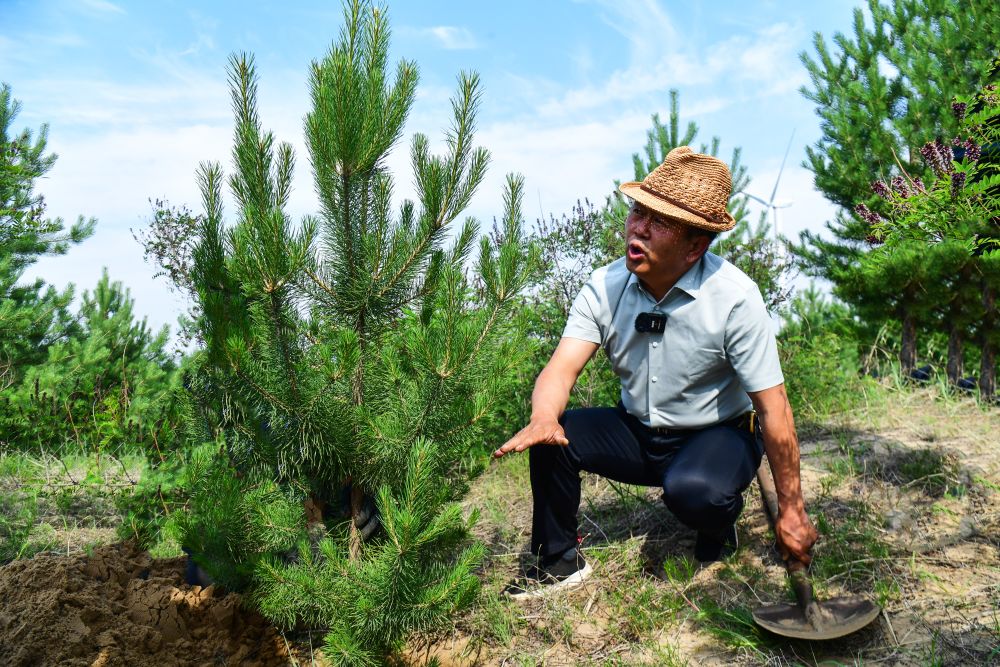 在朝克吐的指导下,用“深栽浅埋”法栽下人生中第一棵“治沙树”的布雷德,满脸自豪地说:“没想到在沙地里种树需要克服这么多困难,幸好朝老师找到了好方法,能让沙地很快变成树林,要不然这里也不会像现在这样绿油油的一片。我真的不敢相信这是中国最大的沙地……”