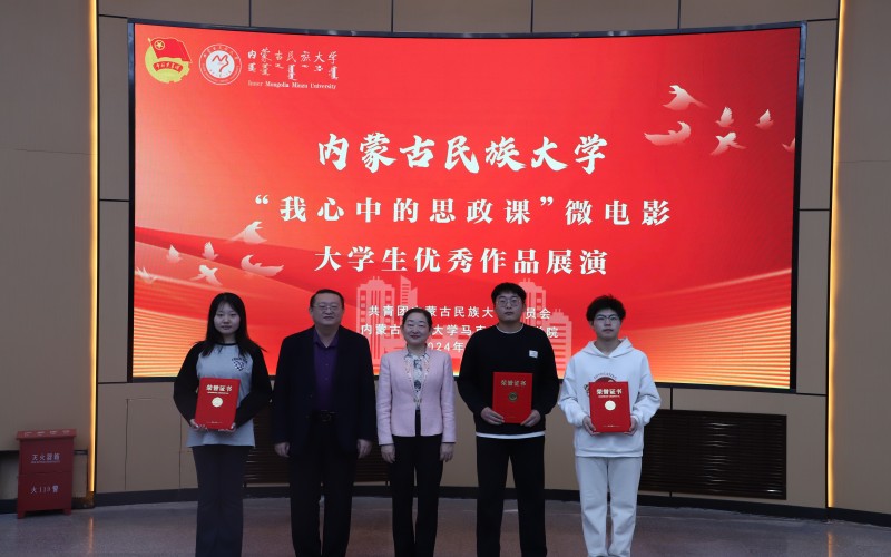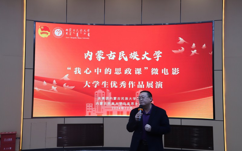 12月4日,校团委在明理楼大报告厅举办内蒙古民族大学“我心中的思政课”微电影大学生优秀作品展演。校团委书记王振宇、马克思主义学院副院长舒心心、马克思主义学院习近平新时代中国特色社会主义思想概论教研室主任王晓慧出席本次活动。共180余人参加活动。