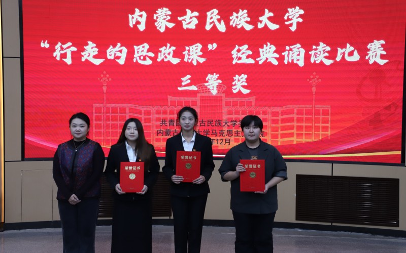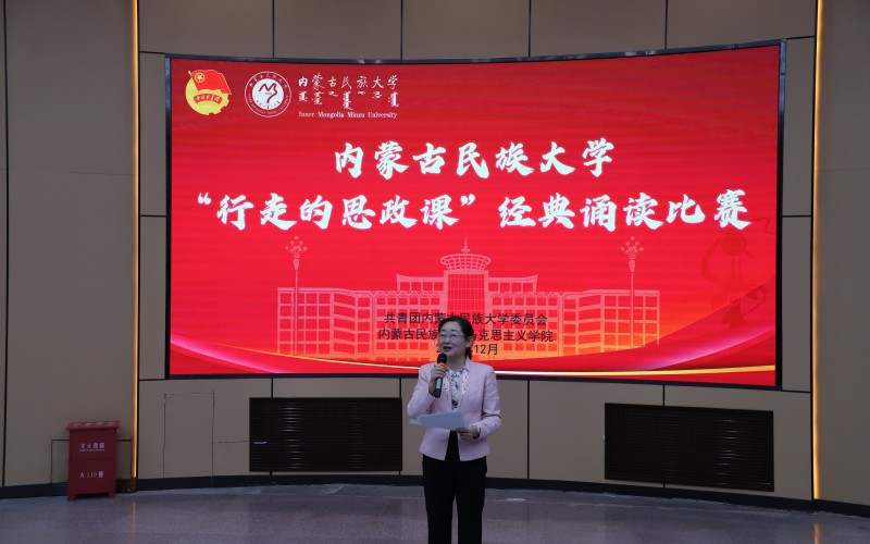 12月3日,校团委在霍林河校区明理楼报告厅成功举办“行走的思政课”经典诵读比赛决赛。马克思主义学院副院长舒心心、校团委副书记王强、党委宣传部宣传科科长王嵘、马克思主义学院实践管理中心主任斯琴高娃、马克思主义学院中华民族共同体概论教研室主任代宏丽担任比赛评委。