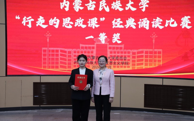 马克思主义学院实践管理中心主任斯琴高娃、马克思主义学院中华民族共同体概论教研室主任代宏丽为优秀奖获得者颁奖
