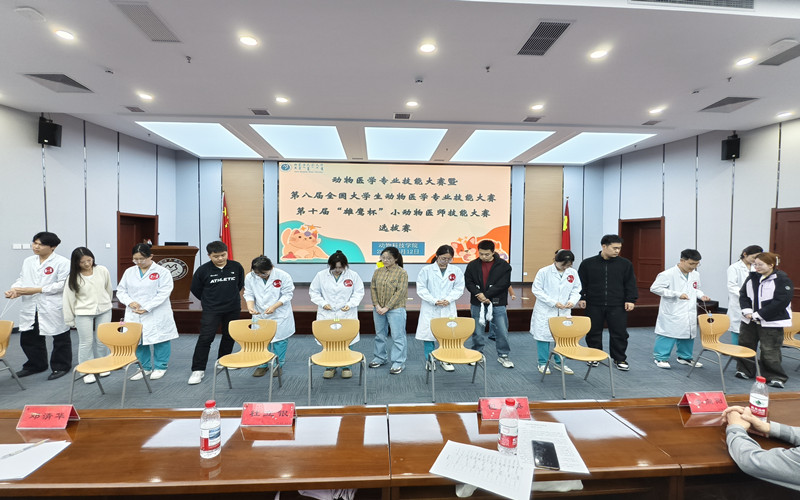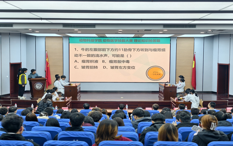 为深化实践教学改革,提升学生专业素养,4月12日,动物科技学院成功举办动物医学专业技能大赛暨“第八届全国大学生动物医学专业技能大赛”“第十届雄鹰杯小动物医师技能大赛”选拔赛。赛事分设图书馆大报告厅(理论环节)与动物医院(实操环节)两个赛场。学院领导班子出席活动,专业课教师邓清华、邱军、高志刚等担任裁判。
