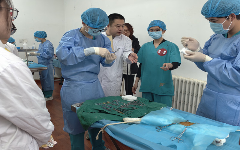 本次大赛秉持“以赛促学、以技强能”的宗旨,精心设置了三大核心环节:理论知识抢答、徒手打结、兔胃切开手术,力求全面精准地检验参赛学生的专业水平,共有8支队伍24名选手参加决赛。比赛中,选手们沉着应对,展现出扎实的理论功底、娴熟的实操能力和勇于创新的精神。