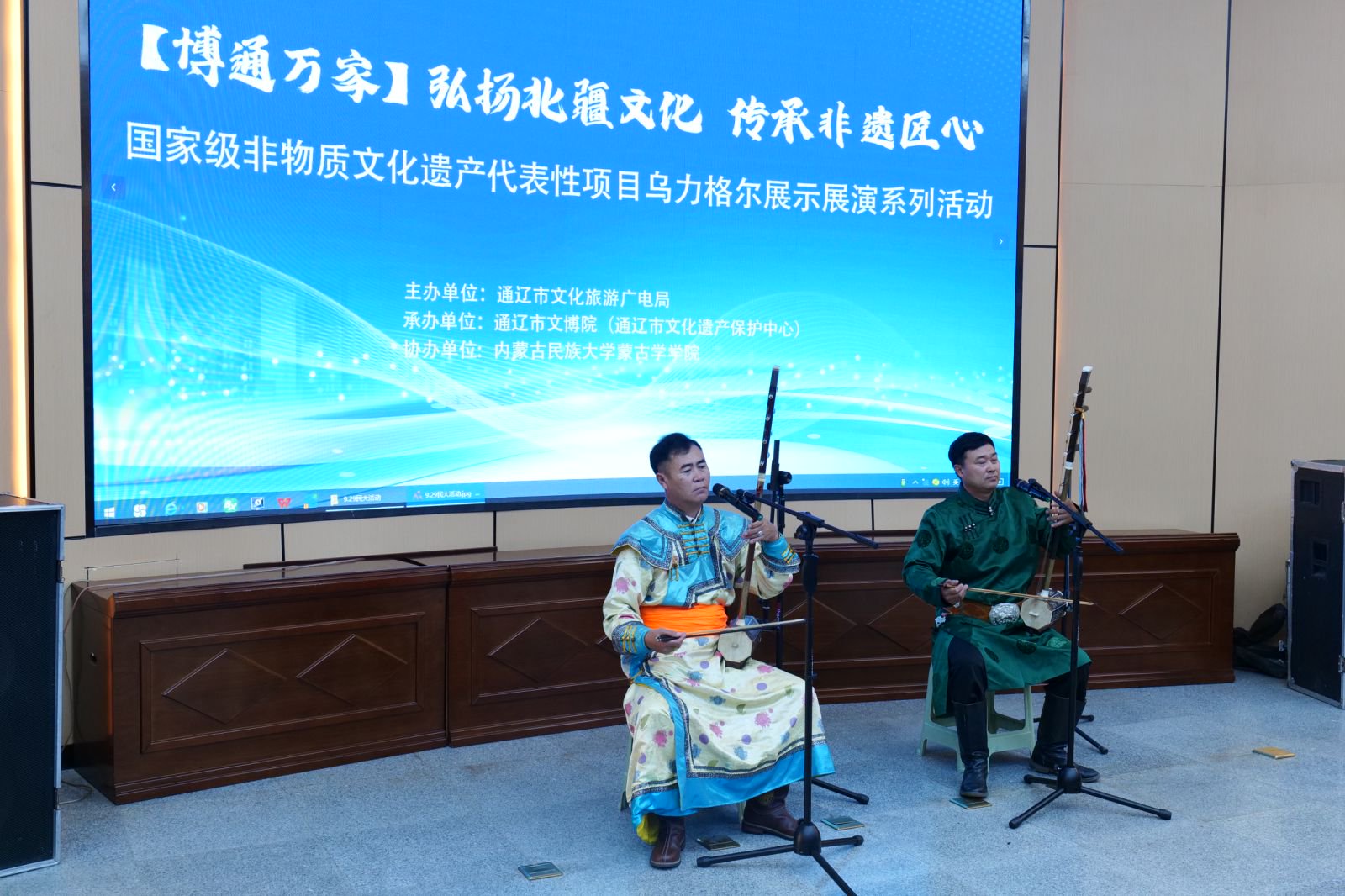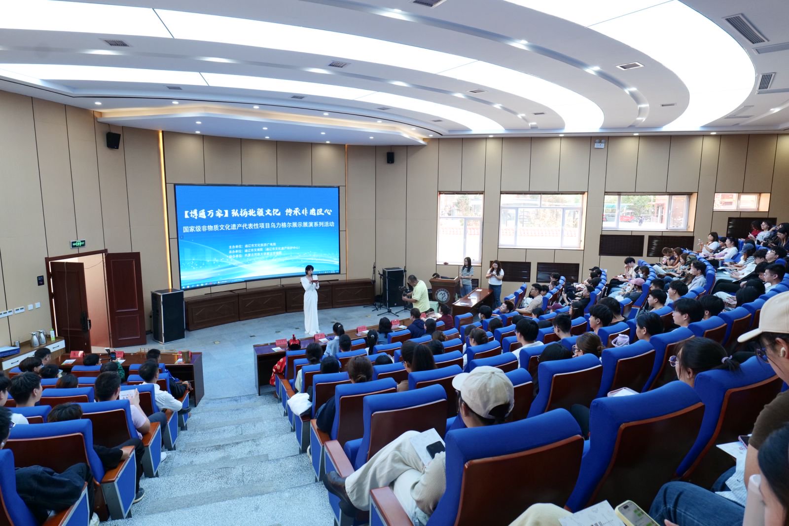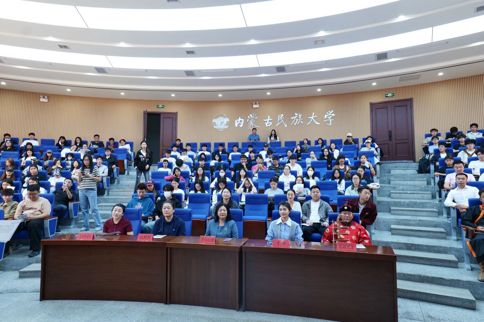 为进一步传承和弘扬中华优秀传统文化,让非物质文化遗产在校园落地生根,9月29日,一场主题为“弘扬北疆文化 传承非遗匠心”国家级非物质文化遗产代表性项目——乌力格尔展示展演活动在内蒙古民族大学霍林河校区明理楼报告厅精彩上演。本次活动由通辽文化旅游广电局、通辽市文博院(通辽市文化遗产保护中心)、内蒙古民族大学蒙古学学院联合举办,内蒙古自治区高校社会科学重点研究基地——非物质文化遗产研究中心,民间文学、曲艺类非物质文化遗产研究基地,科尔沁文化发展传播基地、非物质文化遗产教研室及团总支共同承办。