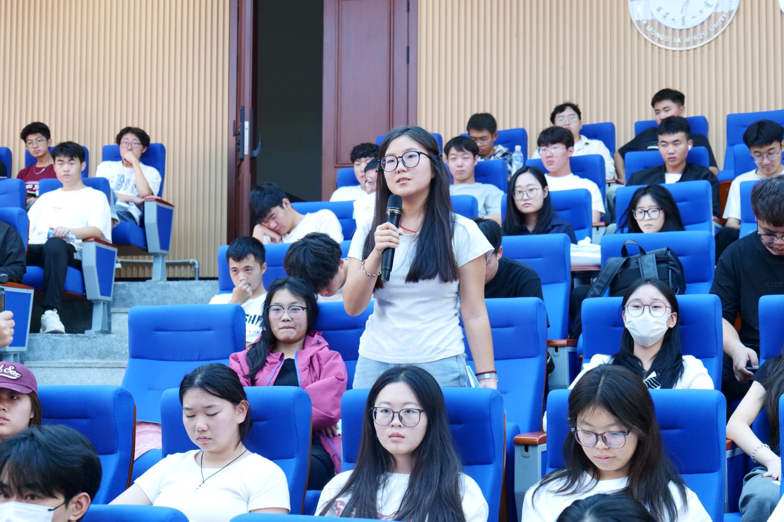 互动环节中,同学们踊跃提问,传承人耐心讲解乌力格尔的历史、现状与传承路径,激发大家对非遗保护的关注与热情。活动结束后,学生们围拢到传承人周围,观察询问四胡乐器的构造与演奏技巧,现场学习氛围浓厚。