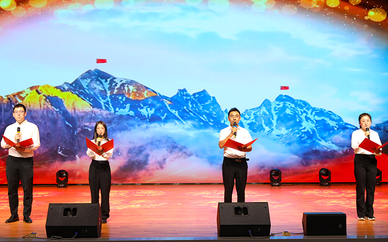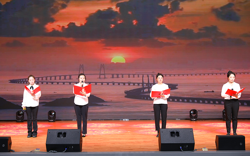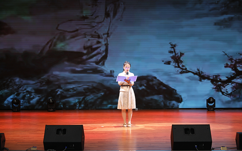 展演中,教职工通过诗朗诵、演讲、影视配音等多元形式,以饱满的情感、清晰的发音和精准的节奏,生动诠释了作品中所蕴含的家国情怀与奋进力量。演出现场时而激昂澎湃,点燃全场热情;时而温情细腻,引起广泛共鸣。不仅展现出扎实的普通话功底,更让现场师生深刻感受到中华语言文化的深厚魅力与博大精深。