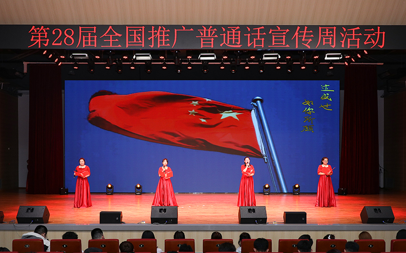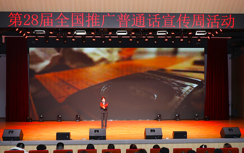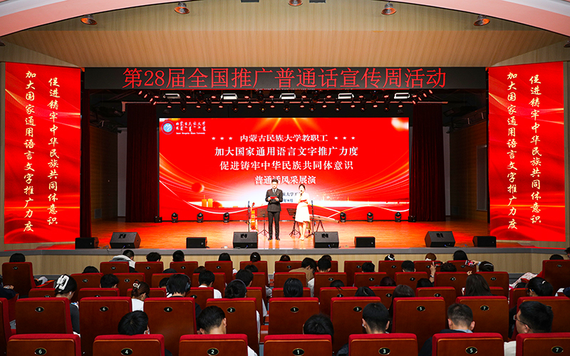 为积极响应全国推广普通话宣传周号召,进一步提升我校师生普通话水平,以语言为桥,增进文化认同,铸牢中华民族共同体意识,9月18日,校工会以“加大国家通用语言文字推广力度,促进铸牢中华民族共同体意识”为主题,成功举办教职工普通话风采展演活动,300余名师生到场观看。