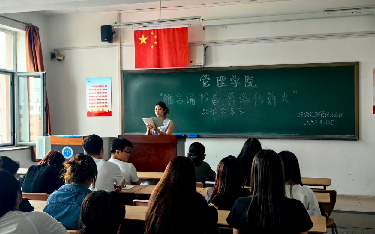 为传承中华优秀语言文化,管理学院以“雅言诵书香,普语传薪火”为主题,组织各班级开展读书分享会,引导学生在共读共赏中感受文字力量,在交流分享中传承文化薪火。
