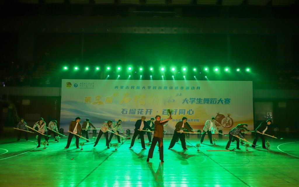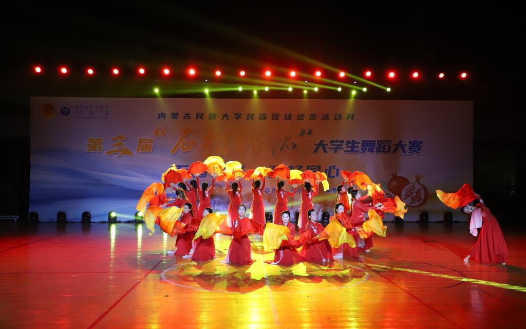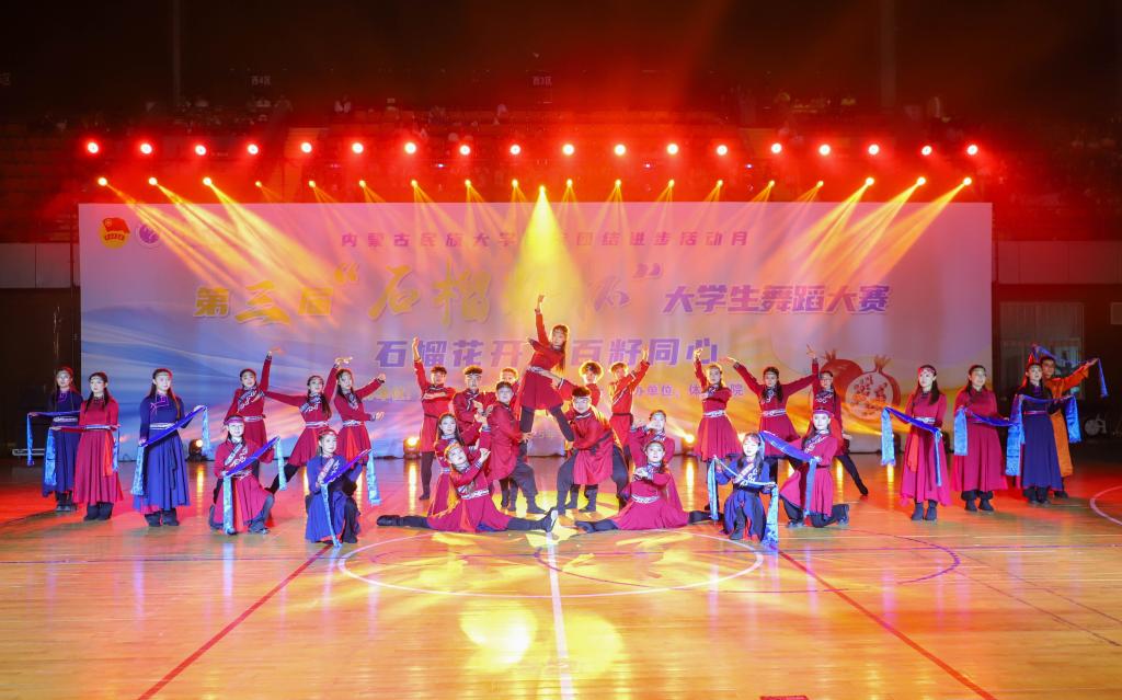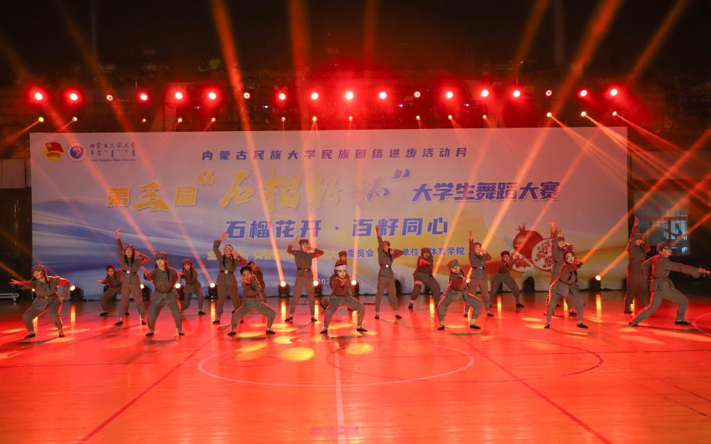 为引领广大学生自觉铸牢中华民族共同体意识,大力弘扬北疆文化,9月28日晚,我校第三届“石榴籽杯”大学生舞蹈大赛在科尔沁体育中心篮球馆圆满落幕。部分职能部门负责人,学院党委书记、副书记,校团委全体工作人员及各学院团总支书记、学生代表3000余人共同观看比赛。