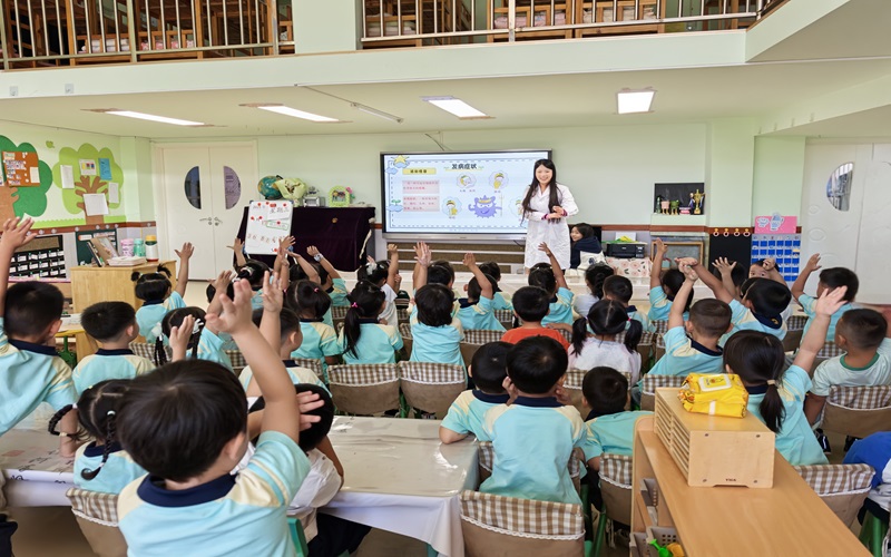 9月17日上午,公共卫生学院组织师生走进通辽市蒙古族幼儿园,开展“推普周健康科普进校园”主题活动。本次活动由学院学生党支部书记、团总支副书记乌兰图雅带队,10名学生党员及入党积极分子参加活动。